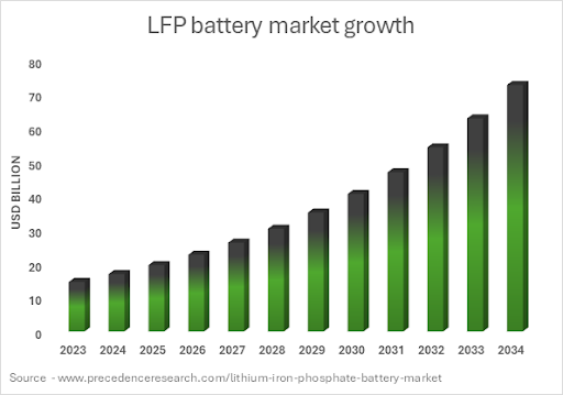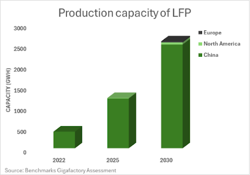 Parallèlement à l’intensification des tensions commerciales entre les États-Unis et la Chine, la demande pour les cathodes LFP a fortement augmenté. Cette hausse s’explique par les nombreux avantages des batteries LFP, qui sont sûres, peu coûteuses et fabriquées à partir de matériaux abondants. La Chine a tiré profit de ce changement, puisqu’elle contrôle actuellement 80 % de la production de LFP. En réponse à cette évolution, les États-Unis ont été incités à intensifier leurs efforts pour diversifier les chaînes d’approvisionnement et localiser la fabrication de batteries.